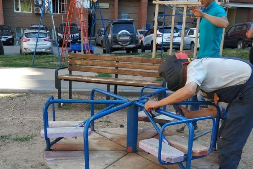 Во дворах района ведутся работы по подбору мусора, покосу травы, стрижке кустарников, кронированию опасных деревьев, ремонту элементов детской площадки. По адресу: Караидельская, 48 проходит капитальный ремонт кровли, в жилом доме по адресу: Софьи Перовской, 10/1 ведется ремонт кровли подъездных козырьков. Во дворе дома по адресу Кувыкина, 39 появилась новая песочница для детей.