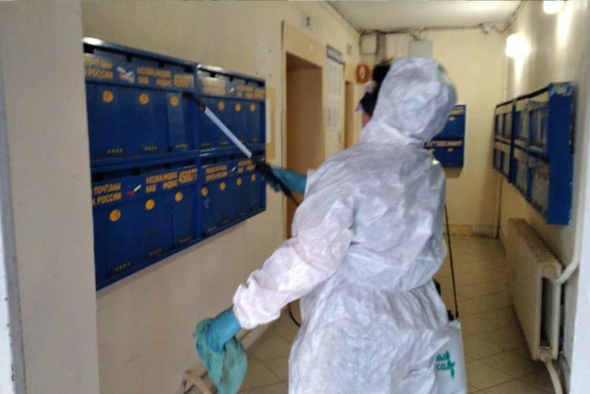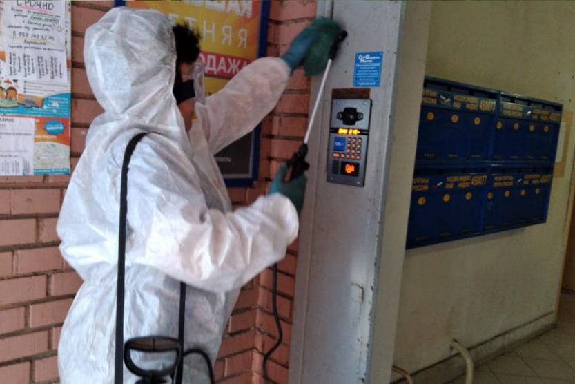 Специалисты дезинфицируют поверхности стен, пола, дверей, лифтов, поручней лестниц, почтовых ящиков специальным раствором. Во дворах многоквартирных домов обрабатываются детские площадки, скамейки и урны. Работы проводятся согласно установленному графику. В день данная обработка проводится более чем в 300 подъездах.