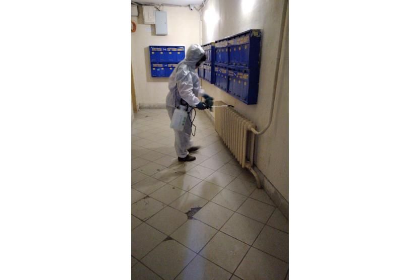 Обслуживающие организации жилищного фонда Кировского района Уфы обрабатывают места общего пользования в подъездах и во дворах многоквартирных домов.