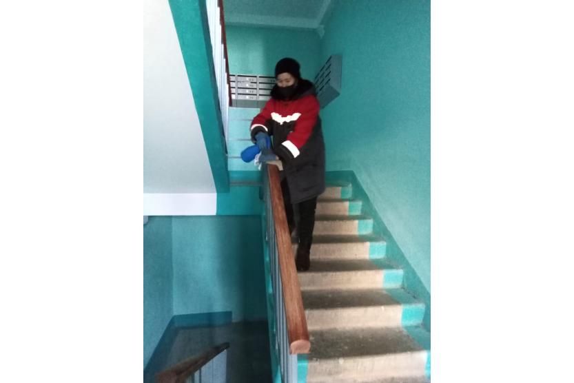 В Кировском районе столицы республики продолжается работа по дезинфекции мест общего пользования в многоквартирных домах. Мероприятия проводятся согласно графику. Работники обеспечены средствами индивидуальной защиты, обработка проводится с соблюдением санитарных норм.