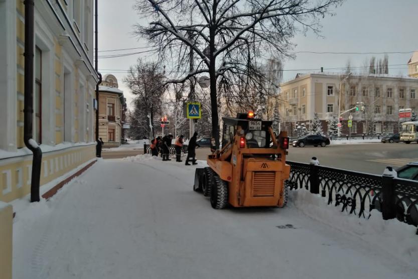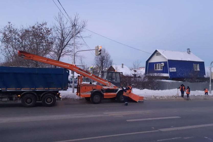 В круглосуточном режиме проводится механизированная очистка дорожной сети улиц и тротуаров. В ночное время коммунальные службы ведут комплексную очистку центральных улиц. Лестничные пролеты и остановки общественного транспорта дорожные рабочие чистят ручным способом. На мостах, путепроводах и других опасных участках дорог проводится обработка противогололедными материалами.