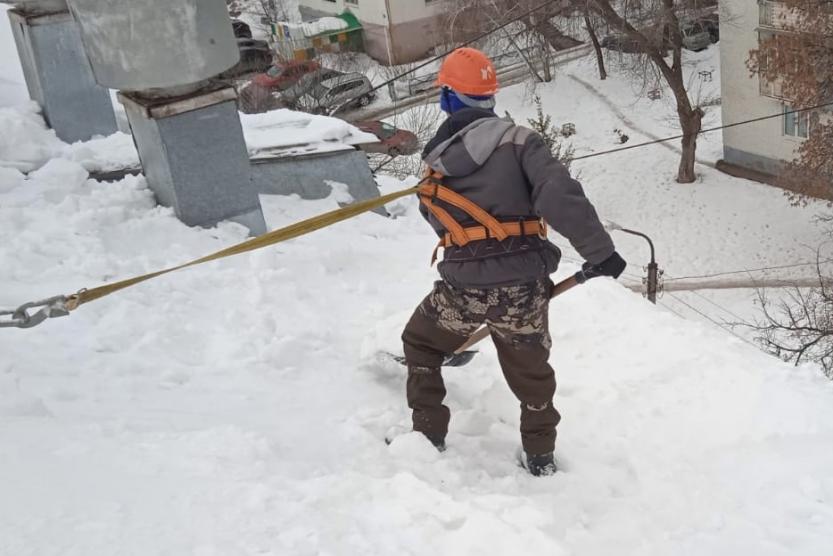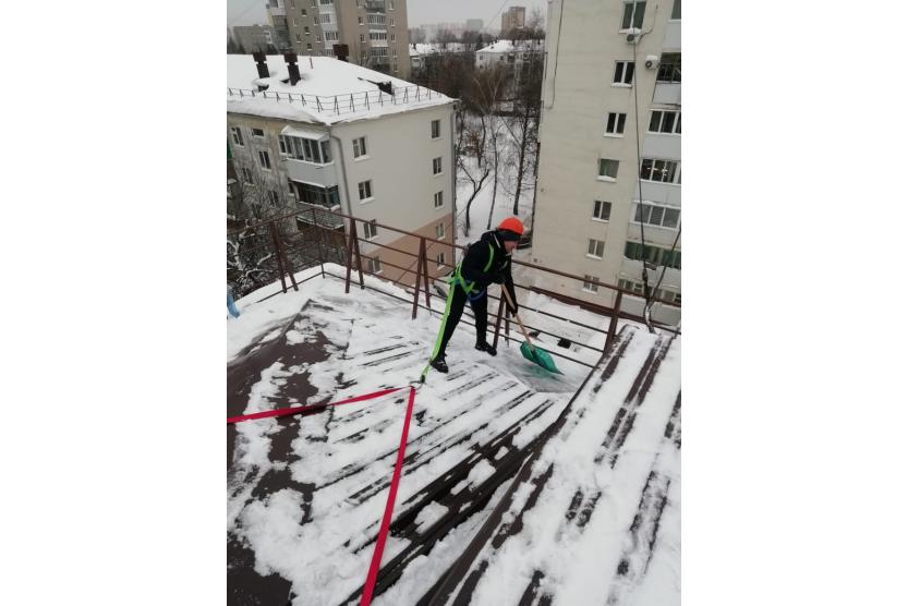 Во избежание несчастных случаев УЖХ Советского района и обслуживающими организациями регулярно производится очистка кровель и козырьков входных групп многоквартирных домов от снега и наледи. Перед началом очистки снега сотрудники проходят целевой инструктаж, получают наряд-допуск на проведение работ на высоте.